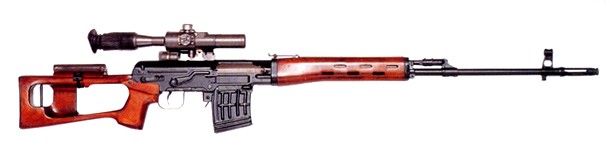 ソ連が1963年に開発した狙撃銃である。この狙撃銃は軽く(他の狙撃銃は5kg。ドラグノフは4.4kg)AK47同様に頑丈な作りである。これは歩兵が使う事が前提とされてるからのようだ。戦場で持ち歩く為に軽く、泥や砂にまみれても作動し、アンサイトと呼ばれる簡易な狙いを定める機器(針金みたいなモノを四角に組んだもの)さえある程で、「プロの狙撃手が使う銃」では無く「誰でも使える銃」と言うのがドラグノフである。(ソ連軍では自動車狙撃兵分隊1個に1挺が装備されていた)