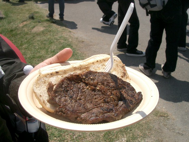 F4を見る前に昼飯を調達。焼いたステーキをパンに挟んで食うシンプルなサンドイッチに近いものを食べた。アメリカ産の肉はどうも固いが美味である。またパンもそのまま食っても結構美味かった。