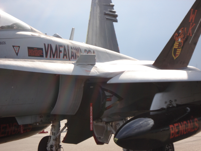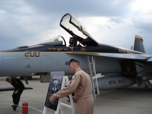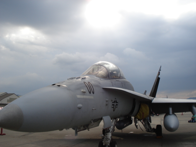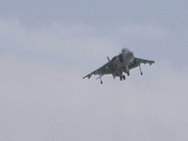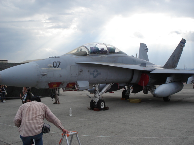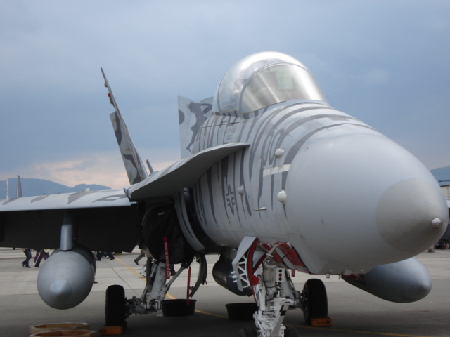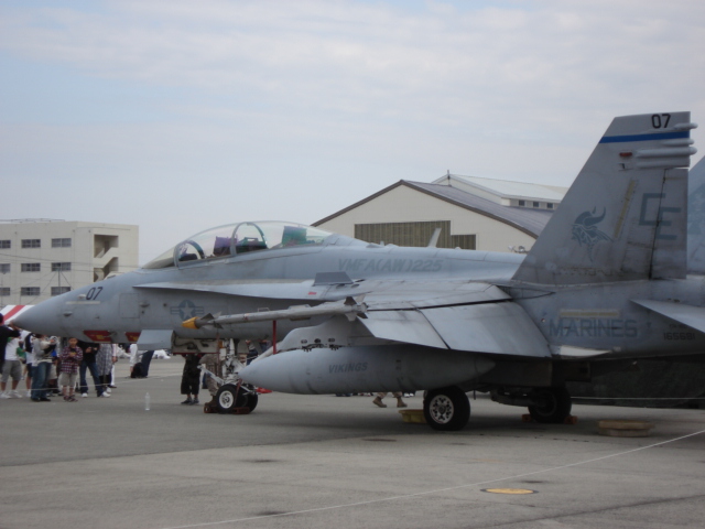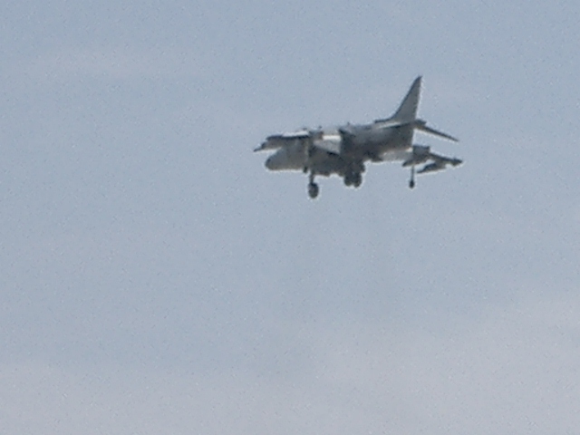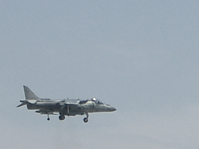 こうしてようやく基地内に入れたが、既にFA18ホーネットとハリアーの飛行展示が行われていた。珍しくハリアーがホーネットに続いて近接航空支援のデモ飛行をしていた。