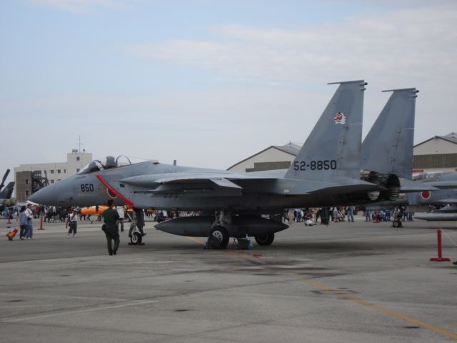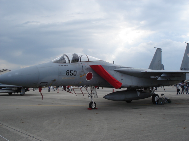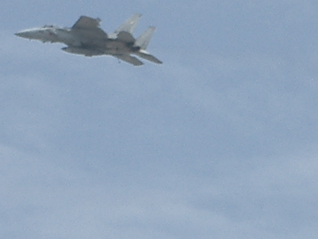 (↑かなり下手な撮し方になってしまった。航空自衛隊のF15)