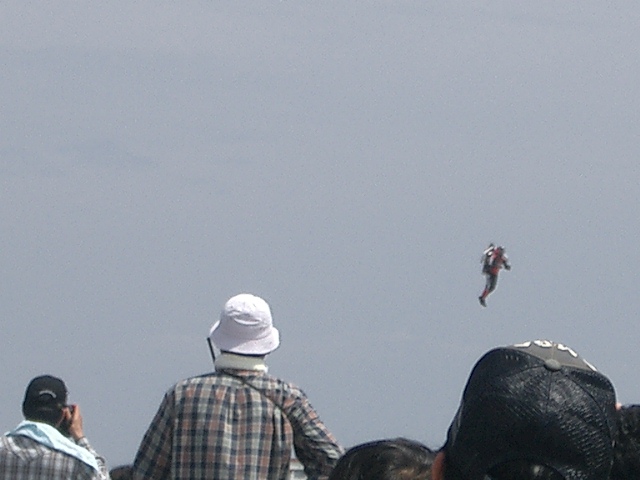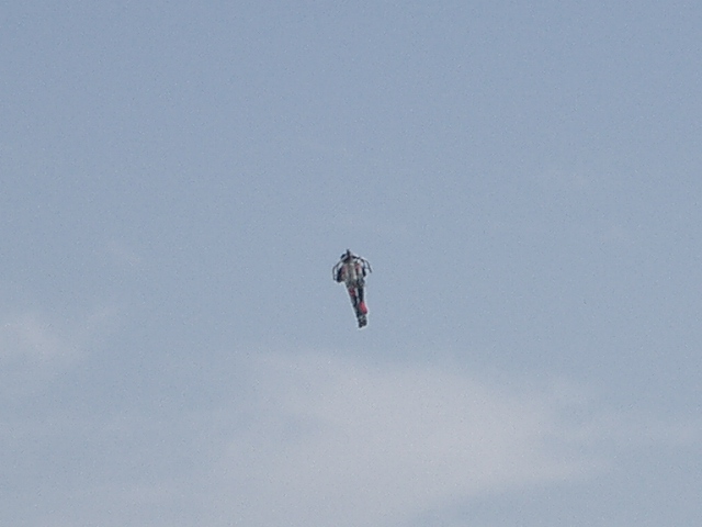 午前と午後にジェットパックの飛行があった。このジェットパックはアメリカの企業が製作したもので1000円のパンフレットには今回の飛行を元アメリカ空軍のパラレスキューの人がしているという。