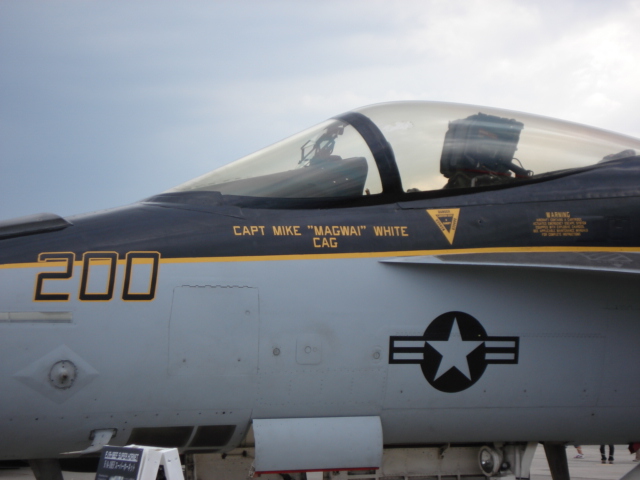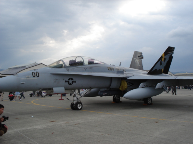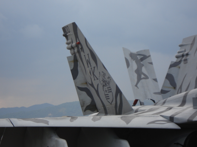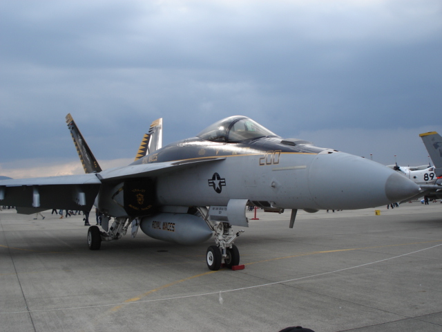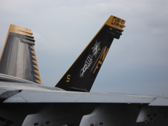 空母飛行隊のVFA27所属のスーパーホーネット。空母以外では厚木を拠点としている。