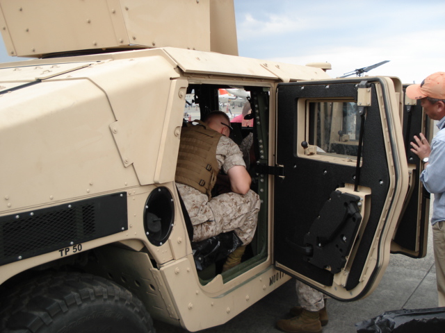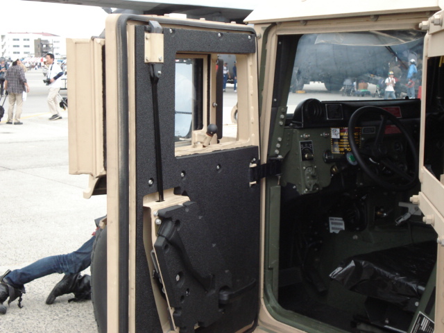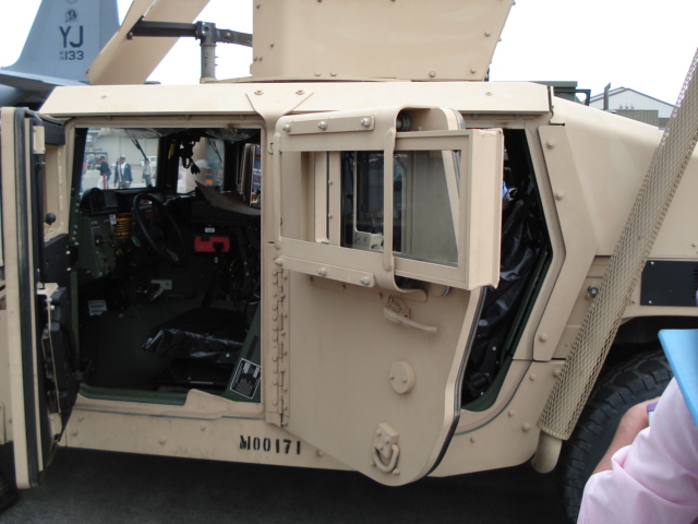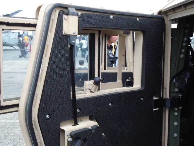 ハンヴィーのドア。ドア自体の厚さも凄いが窓が引き戸みたいになっている。開閉は窓の内側にあるレバーでするようだ。