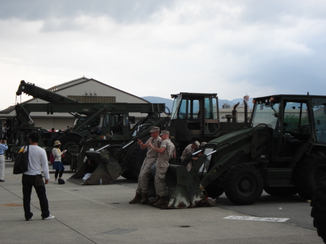 重機も展示されていた。基地が攻撃や災害で損壊した場合はこれらのマシーンが力を発揮する。
