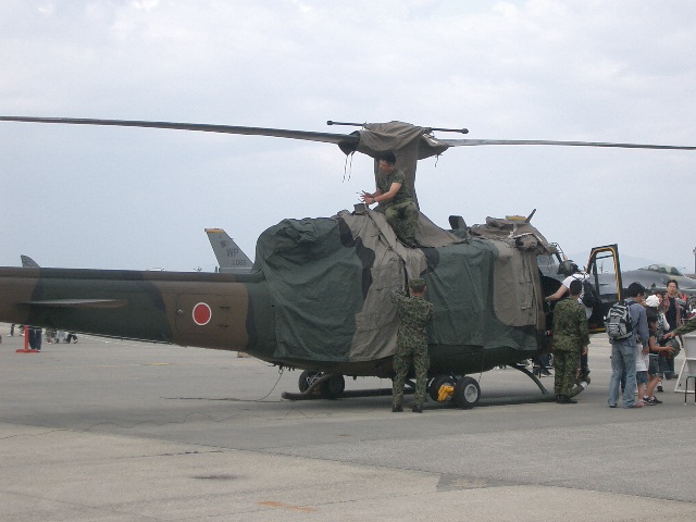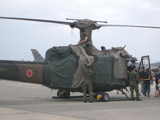 こちらもシートをかけるUHー1輸送ヘリ